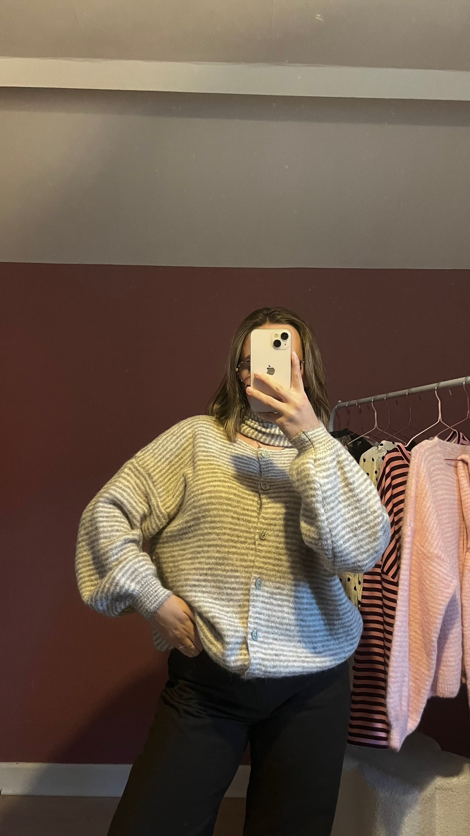 Avec ses rayures beige et blanche et sa mini écharpe assortie, ce gilet apporte tout de suite une touche élégante et cosy à votre tenue. Léger mais chaud, il se porte facilement sur un tee-shirt, une chemise ou une robe, pour un look moderne et confortable. Craquez pour ce duo pratique et tendance — le gilet marinière qui sublime toutes vos tenues 🤍