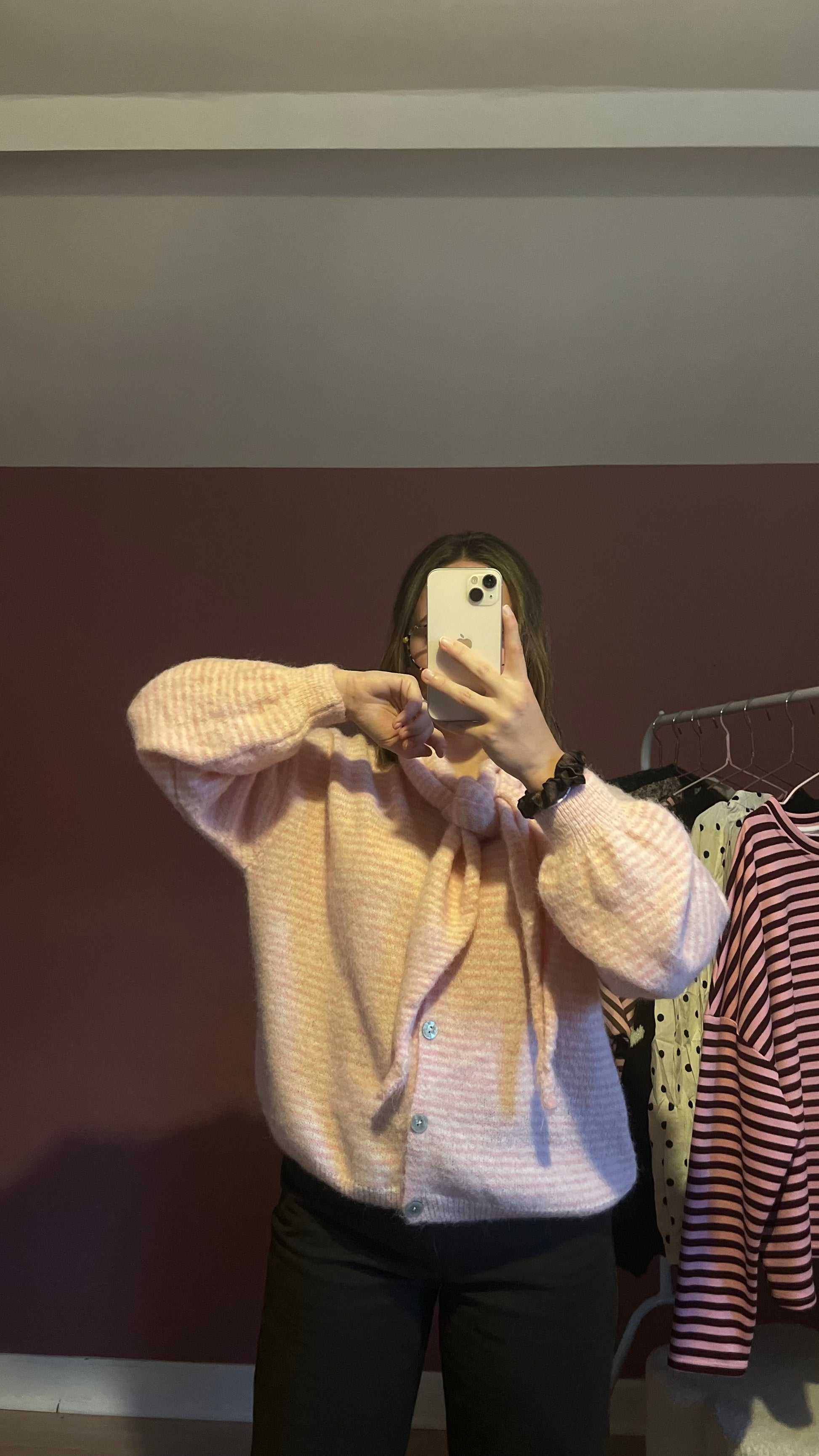 Avec ses rayures rose et blanche et sa mini écharpe assortie, ce gilet apporte tout de suite une touche élégante et cosy à votre tenue. Léger mais chaud, il se porte facilement sur un tee-shirt, une chemise ou une robe, pour un look moderne et confortable. Craquez pour ce duo pratique et tendance — le gilet marinière qui sublime toutes vos tenues 🤍