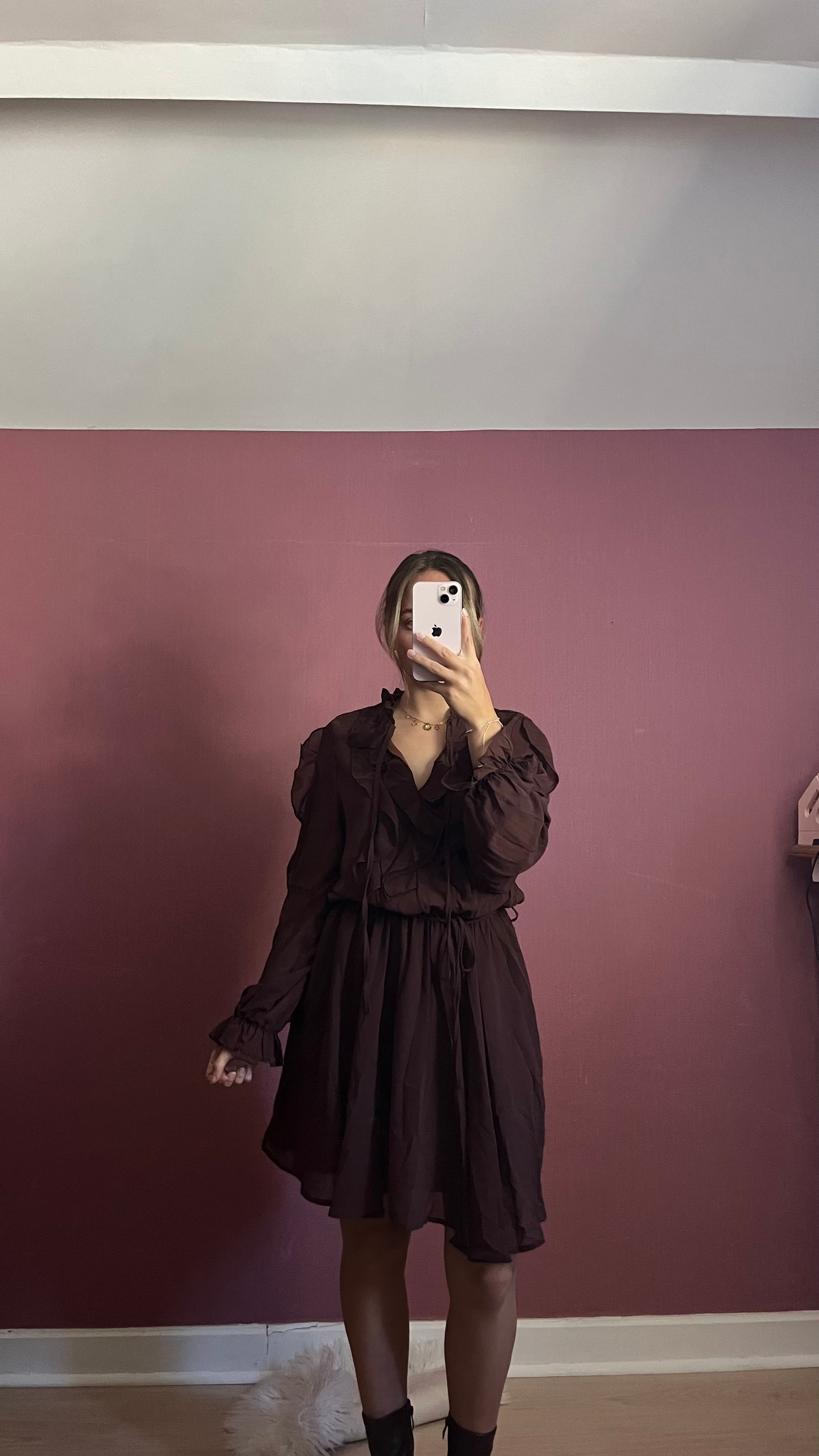 Laissez-vous séduire par notre robe en voile prune, une pièce fluide et élégante aux jolis détails à froufrous. Sa matière légère et son tombé aérien en font la robe parfaite pour vos soirées d’automne ou vos occasions spéciales
