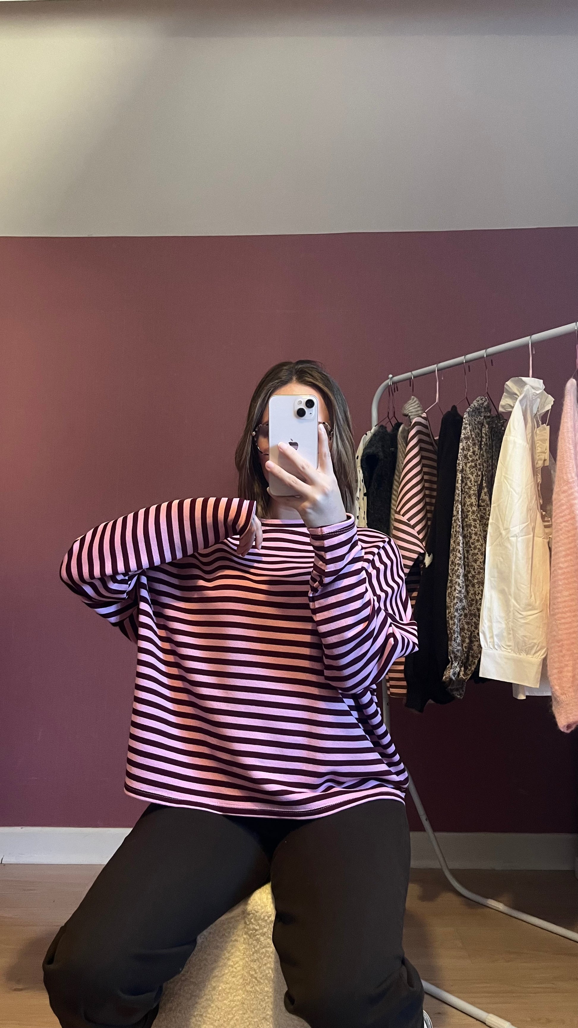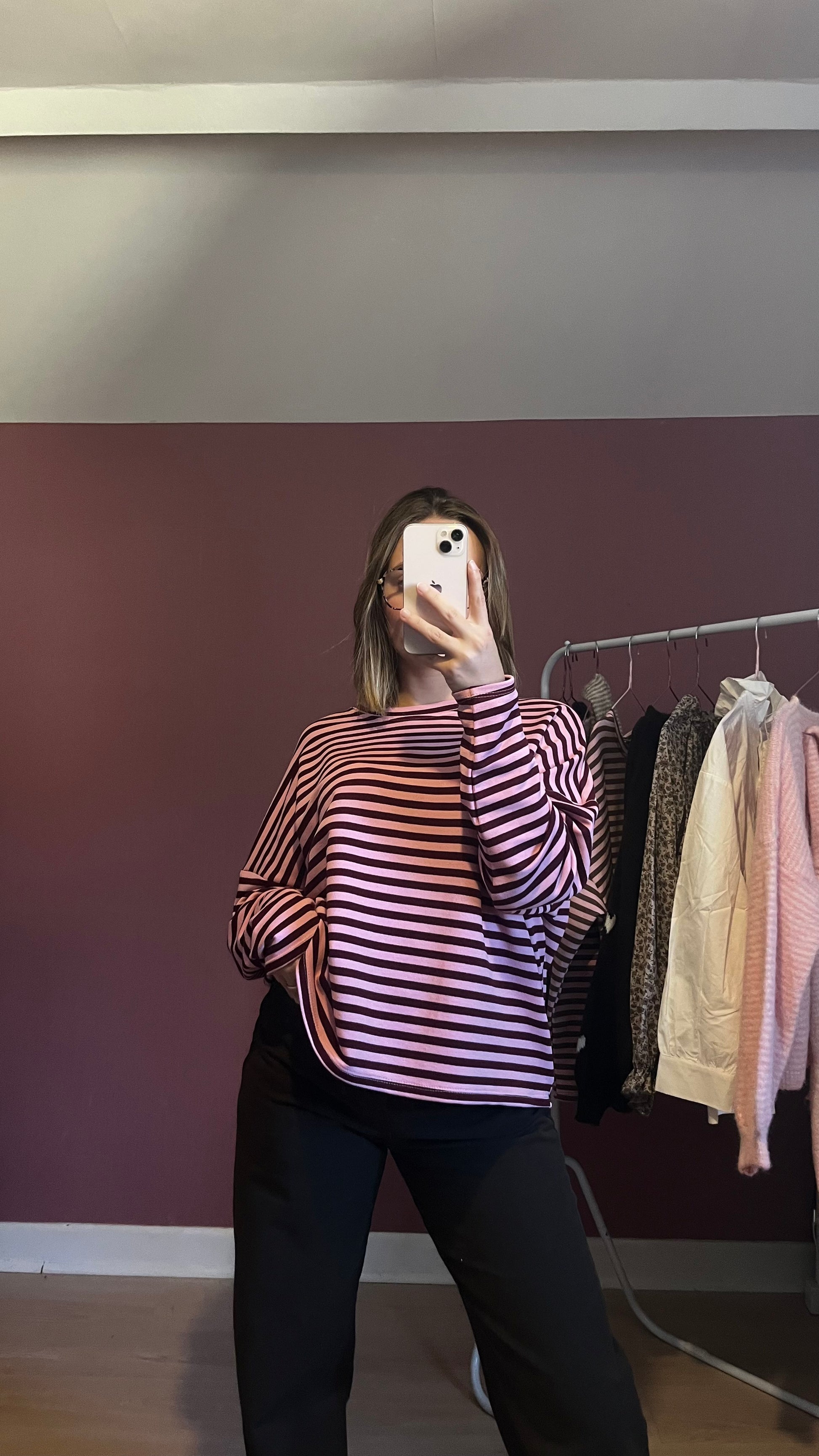 Avec ses rayures rose fushia et bordeaux, il offre un style à la fois tendance et féminin, tout en restant confortable et facile à porter. Sa matière douce et agréable en fait un indispensable de la saison — à porter aussi bien seul que sous un gilet ou une veste.